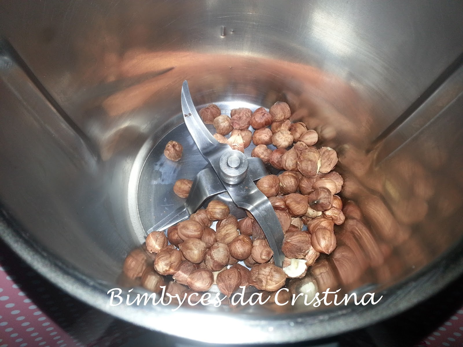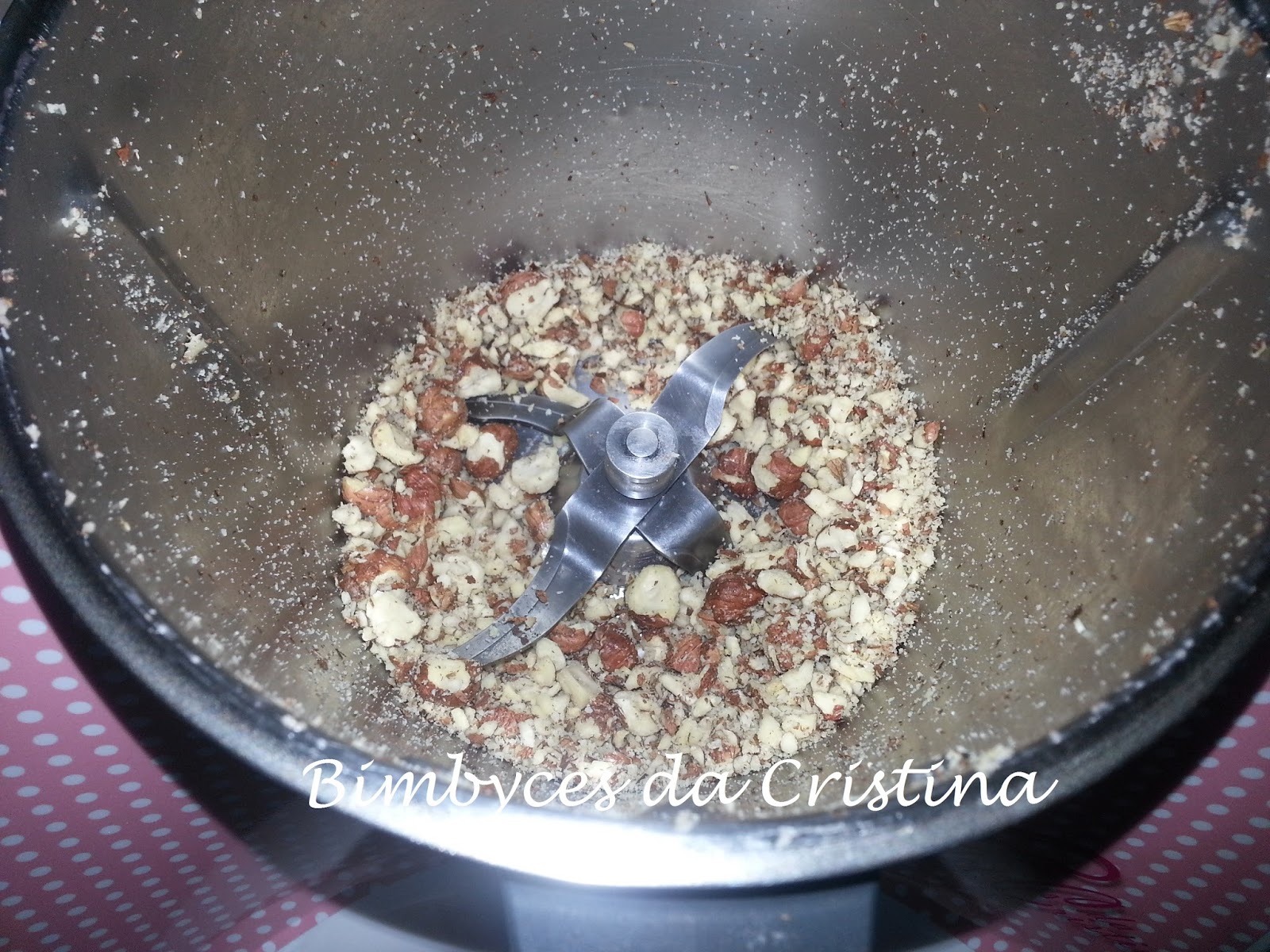 1. Com o copo seco, picar grosseiramente as avelãs. 2 toques Turbo Reservar.