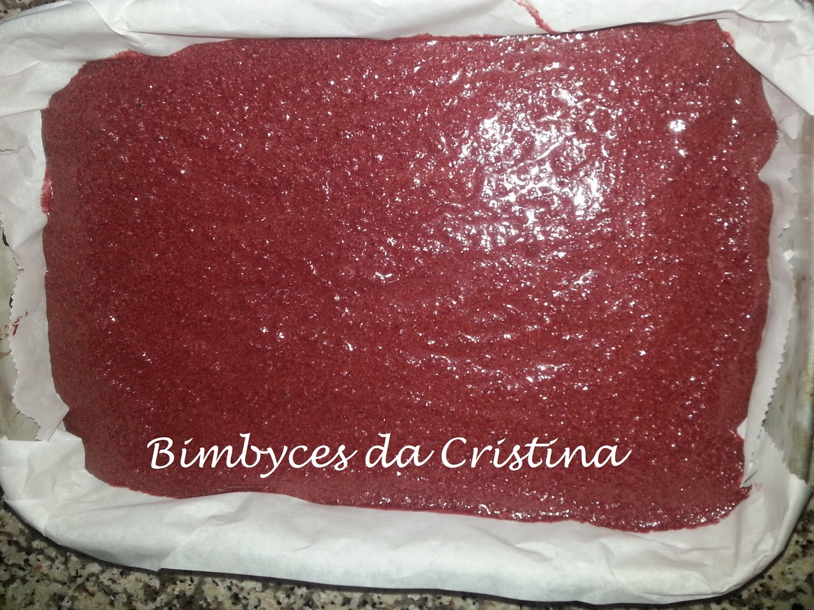 6. Depois de bem envolvido, deitar o preparado num tabuleiro 20x28cm forrado com papel vegetal. Levar ao forno a 180º cerca de 30-35Min.