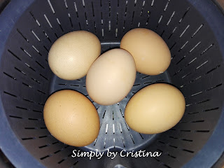 2. Retirar do cesto e passar os ovos já cozidos por água fria. Reservar.