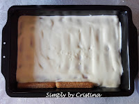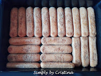 7. Num tabuleiro com 30cmx21cmx5cm, usei ESTE da Metalúrgica Bakeware, dispor como primeira camada, os palitos La Reine mergulhados no café perfumado.