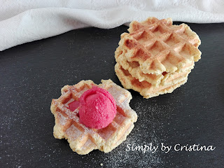 Eu adoro Waffles! Existem tantas e tantas versões...que dá vontade de experimentar todas, assim tenho sempre mais uma desculpa para voltar a fazer. ;) Costumo fazer esta receita , mas hoje para a estreia da minha nova máquina de Waffles decidi fazer uma receitinha à minha maneira. Da receita original dos Waffles Belgas ou Gaufres de Liège, apenas mantive o formato original, redondos.