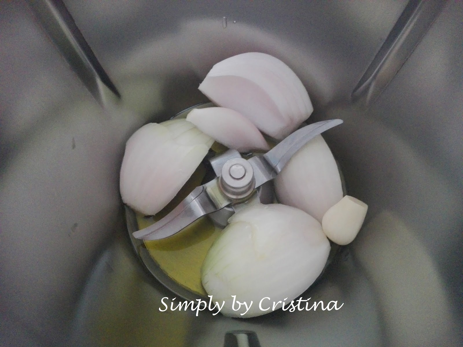 Preparação: 1. Colocar no copo o Azeite, a cebola e o alho. 10Seg./Vel.5