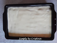 8. Espalhar por cima da camada de palitos, metade da mistura do Quark.
