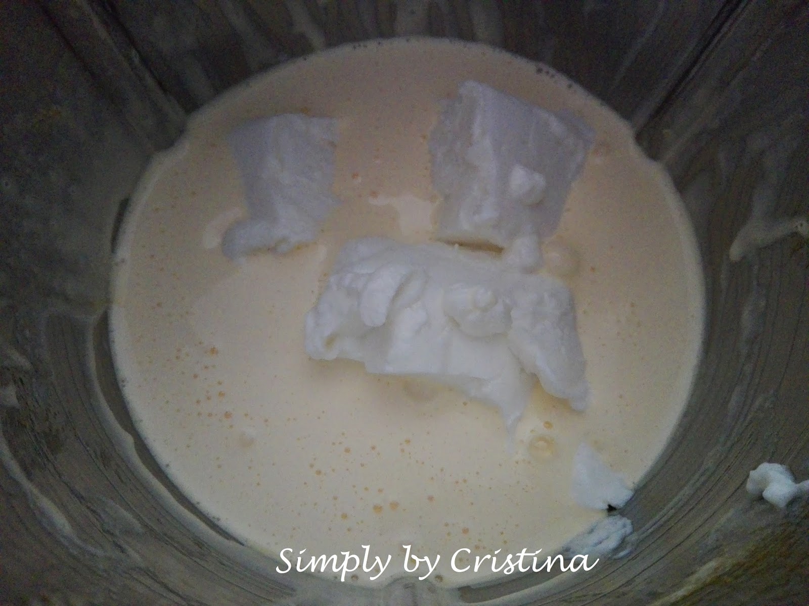 5. Com a ajuda de uma batedeira, bater as 2 claras em castelo de modo a que fiquem bem firmes. Reservar.