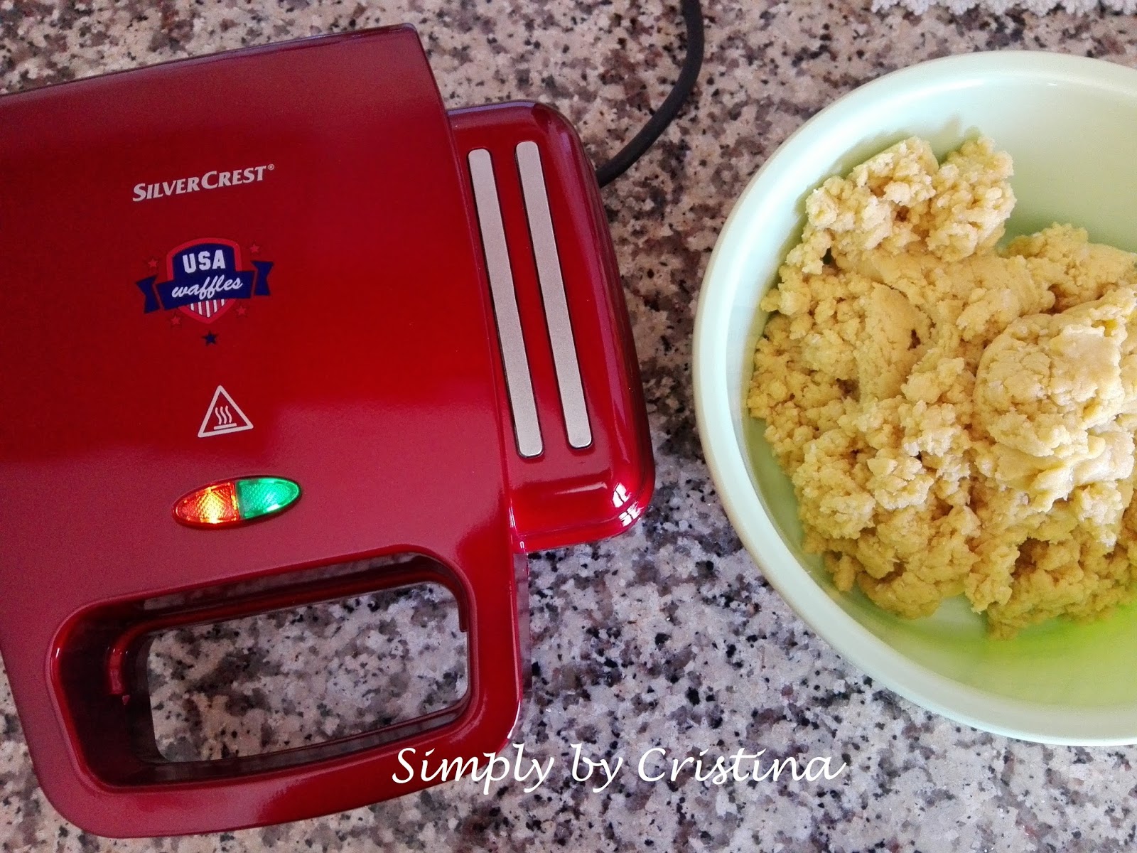 Mas antes da receita...tenho que falar da máquina! ;) De passagem pelo LIDL, deparo-me com a pequena máquina, com um preço tão "apetitoso" como os Waffles maravilhosos que já saíram de lá. Uma verdadeira pechincha, 14.99€, tendo em conta a qualidade! A minha antiga já estava a pedir a reforma e ainda bem que comprei esta da SilverCrest. É simplesmente espetacular e é também bonita, recomendo!