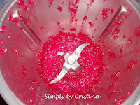 Colocar no copo 250g e reservar as restantes para a decoração. Programar 10Seg./Vel.5 Reservar o puré de Framboesas.