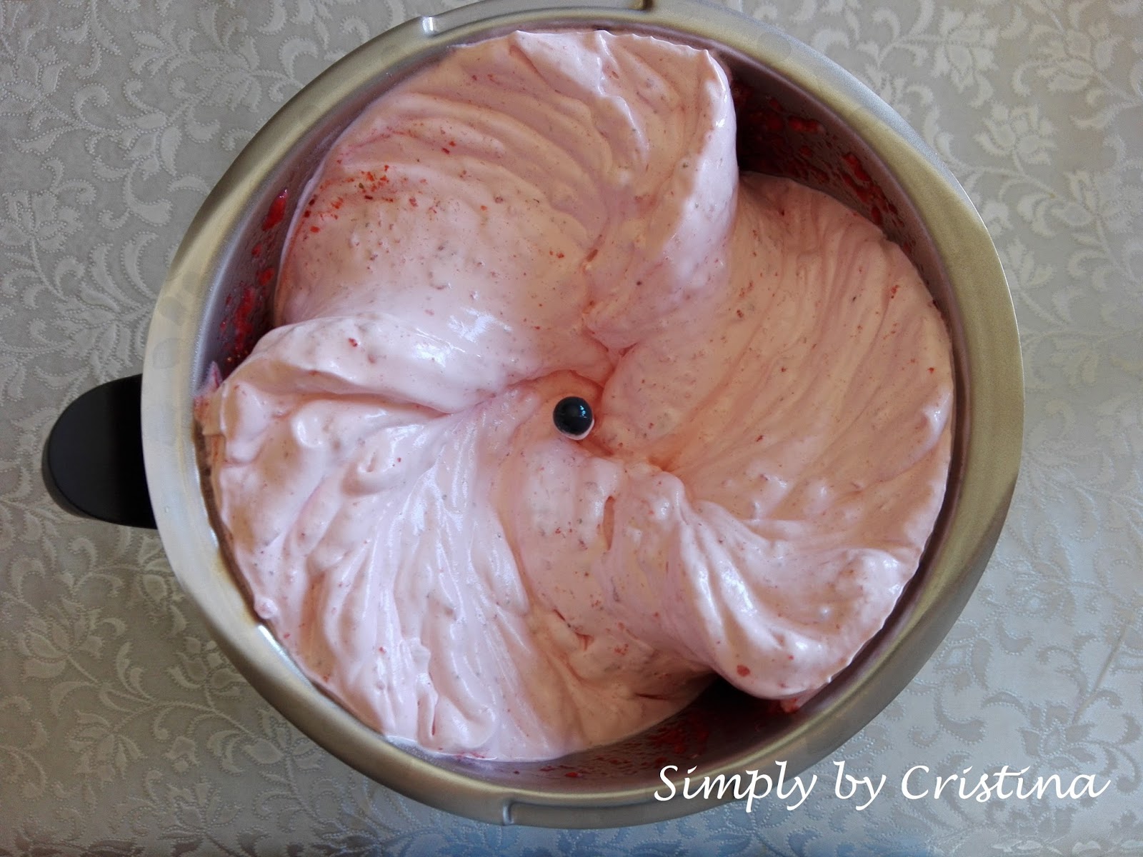 Ingredientes: 600g de Morangos congelados 100g açúcar 2 claras de ovo 1 limão 1L de água fresca Preparação: 1. No copo, deitar o açúcar e pulverizar. 15Seg./Vel.9 2. Adicionar os Morangos congelados, triturar. 30Seg./Vel.5 3. Colocar a borboleta, adicionar as claras de ovo. 6Min./Vel.3