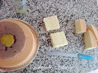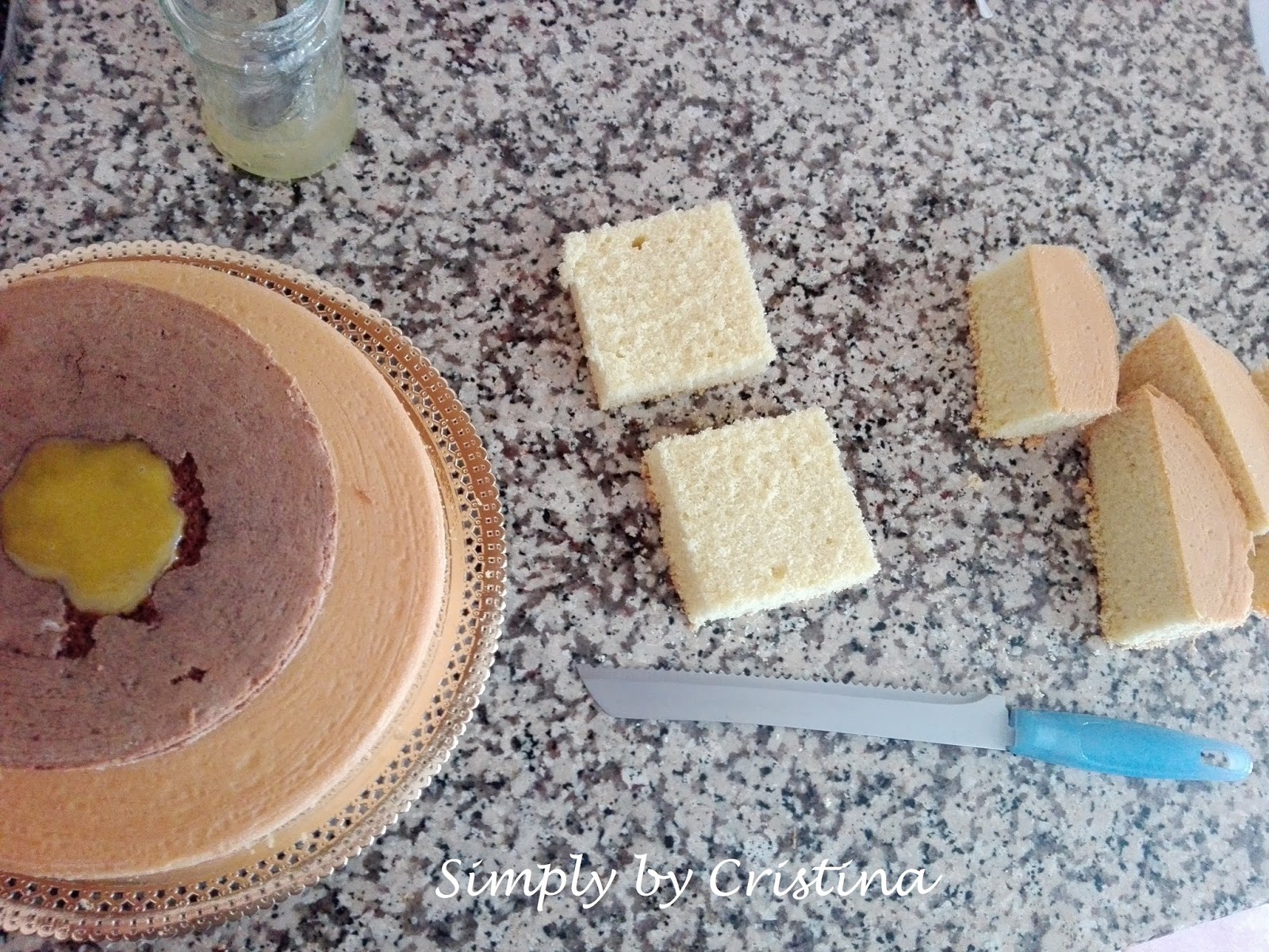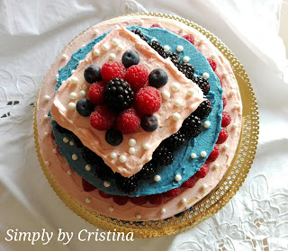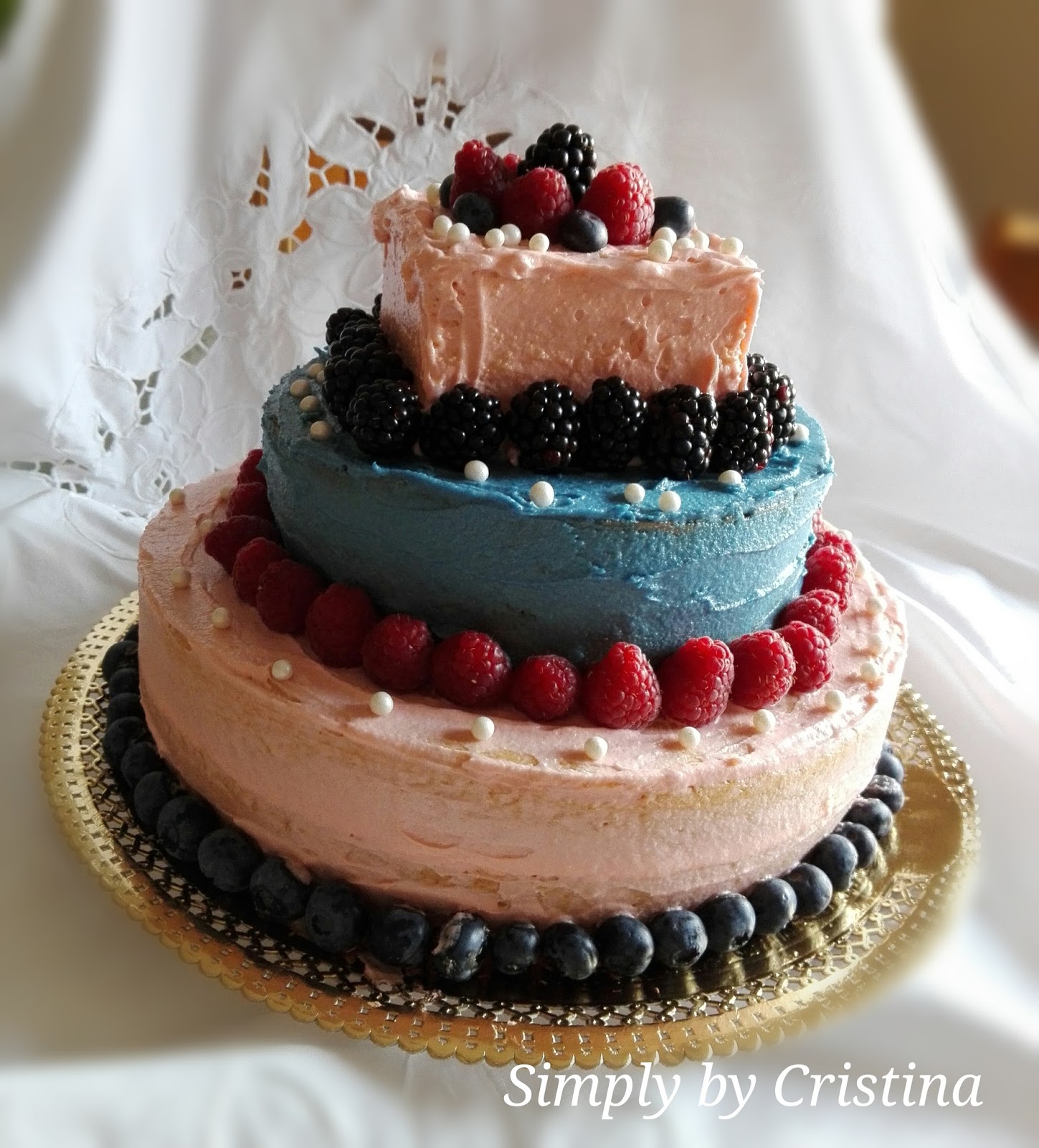 Para o aniversário delas, fiz um bolinho. Não sei o porquê, imagino uma coisa, mas acaba por sair algo bem diferente... sempre mais bonito do que aquele que havia idealizado. Contudo, o bolo que elas pedem, os recheios e os motivos decorativos estão sempre lá, mas a apresentação, apesar de elas não serem exigentes é sempre uma surpresa. Ora fazer um bolinho em casa não é de todo difícil! Basta alguma criatividade, aproveitar frutas da época e brincar com a apresentação. Os bolos escolhidos foram muito simples: Pão de Ló de Chocolate e Pão de Ló Os recheios: Ovos Moles com Doce de Chila misturados e simples. Para a decoração utilizei frutos frescos: Amoras, Framboesas e Mirtilos. Barrei todo o exterior do bolo com Buttercream, cuja receita está, AQUI Usei ainda Pérolas Brancas da Vahiné. Aqui fica o registo da forma como fiz a montagem do bolo.