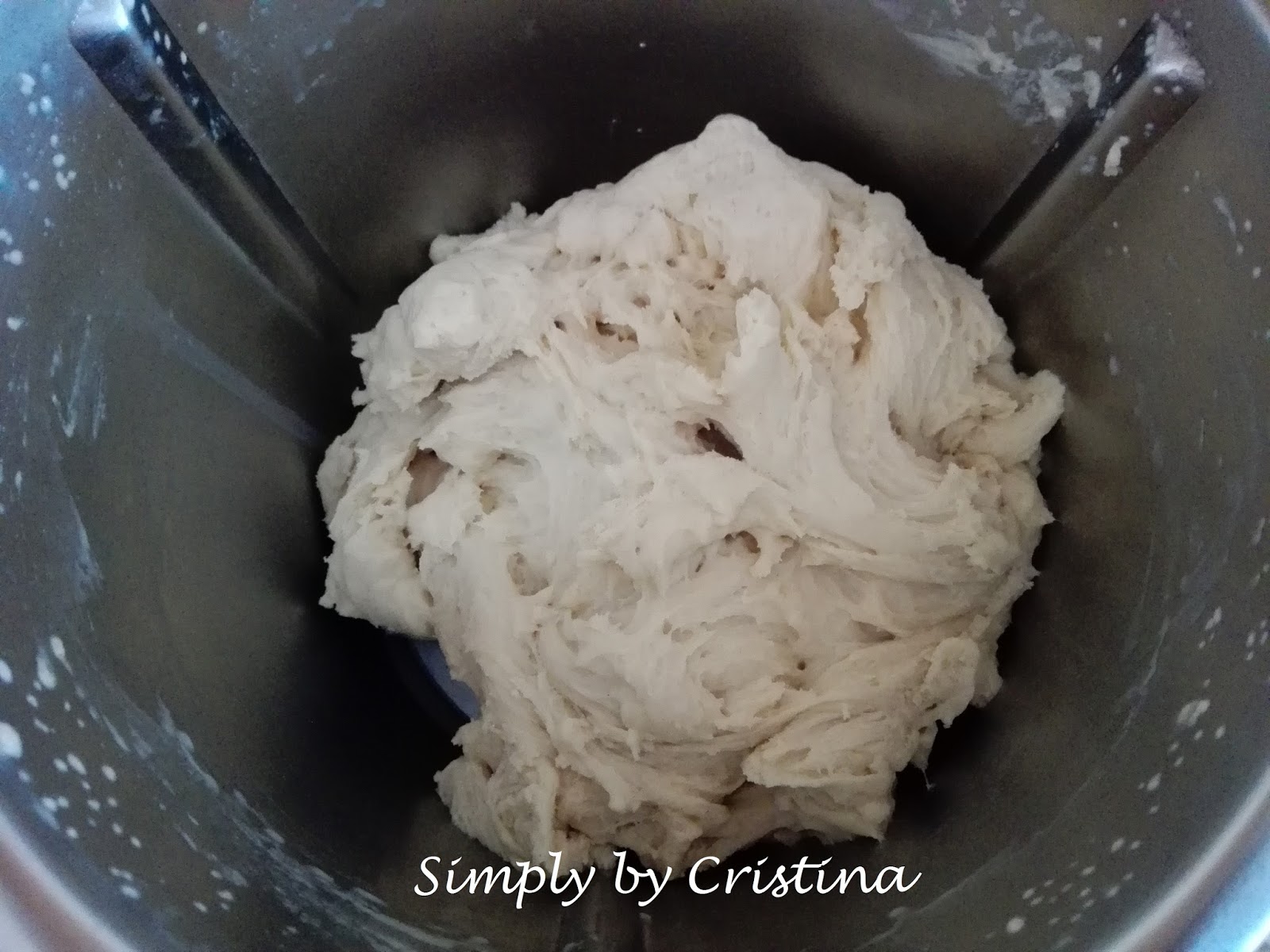 Ingredientes: 300ml leite 1 saqueta 7g de FERMIPAN 60g açúcar 50g manteiga (só usei 40g) 550g farinha T65 (usei 550g T55) 1c. chá de sal (Não usei) 1 ovo batido para pincelar Preparação: 1. No copo colocar o leite, açúcar, o fermento e a manteiga. Programar 3Min./37º/Vel.2 2. Adicionar a farinha. Amassar 3Min./Vel.Espiga