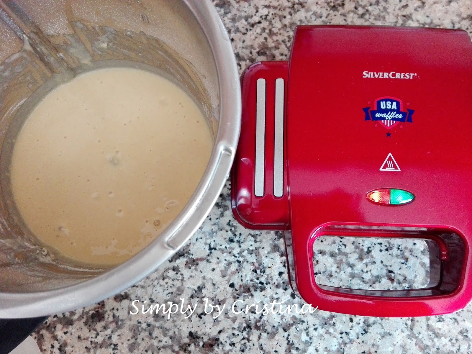 Waffles de Alfarroba Ingredientes (8waffles): 1 ovo 200g farinha de Arroz 50g farinha de Alfarroba 30g açúcar amarelo 1c. fermento em pó para bolos 125ml leite magro Preparação: 1. Colocar todos os ingredientes no copo da Bimby. Programar 30Seg./Vel.4
