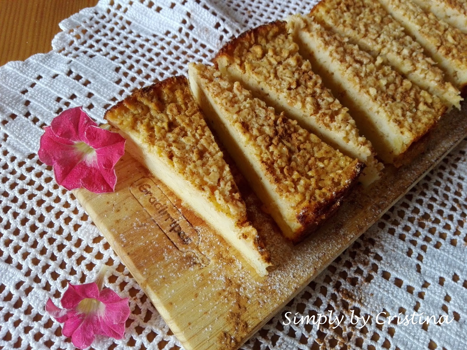 5. Retirar e desenformar após 10Min. Deixar arrefecer à temperatura ambiente. Reservar no frigorífico até ao momento de servir. Servir numa tábua GRADIRRIPAS já partida em perfeitas fatias. Polvilhar com canela no momento de servir.