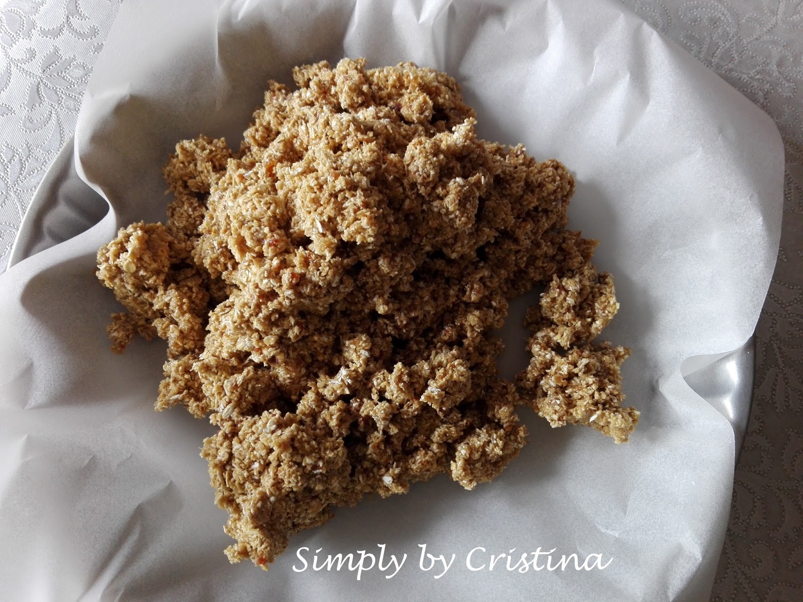2. Forrar uma tarteira canelada d'A Metalúrgica Bakeware Production, s.a. com fundo amovível com papel vegetal, usei ESTA 3. Deitar o preparado na tarteira e com uma colher calcar até que esta esteja totalmente preenchida. Reservar no frigorífico.