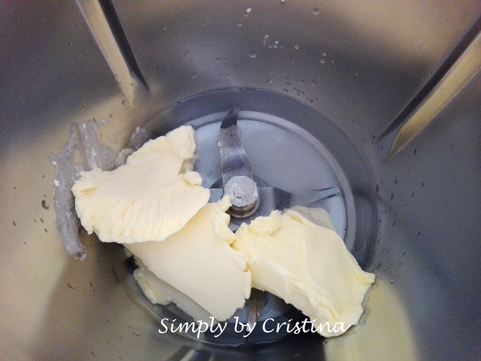 Ingredientes: 300ml água 150g manteiga 1c. sobremesa bem cheia de açúcar 250g farinha T55 5 ovos Recheios utilizados: Creme de barrar Cacau e Avelã Buttercream Açúcar em pó, para povilhar Preparação: 1. No copo, deitar a água, o açúcar e a manteiga. Programar 5Min./100º/Vel.1