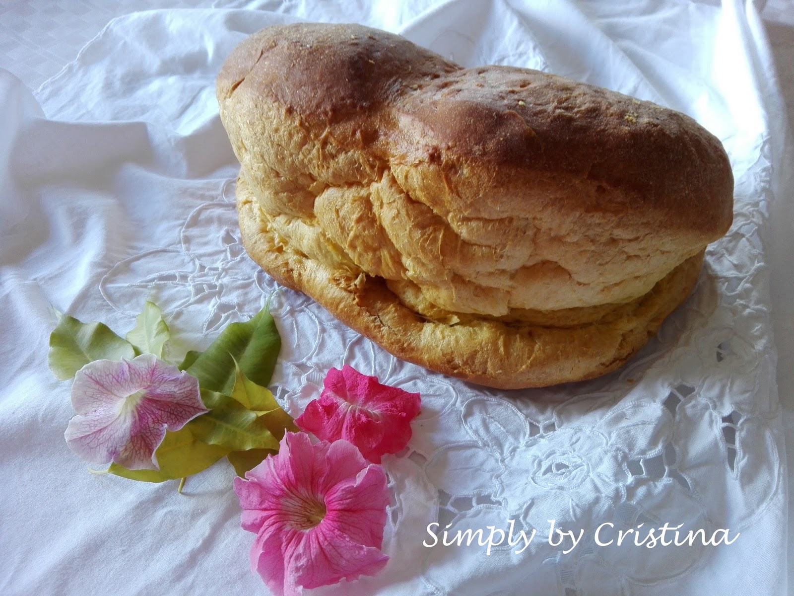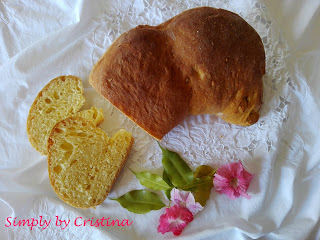 Ingredientes: Para o isco de levedura: 80g farinha T55 50ml água quente 1 saqueta de 7g FERMIPAN Para a massa: 500g de farinha T55 5 ovos caseiros (temperatura ambiente) 150ml leite morno 100ml de azeite Preparação: 1. Deitar no copo a farinha para o isco da levedura, o fermento e água quente. Programar 2Min./50º/Vel.1 Deixar descansar este preparado dentro do copo da Bimby durante 30Min. ou até dobrar de volume. 2. Adicionar os 500g da farinha e os ovos. Programar 2Min./Vel. Espiga 3. Programar 3Min./Vel.Espiga e adicionar pelo bucal, o leite morno. 4. Findo este tempo, programar mais 3Min./Vel. Espiga e com o copo medida inserido verter o azeite, para que este seja incorporado na massa, lentamente. 5. Retirar a massa para um recipiente grande, que deve estar polvilhado com farinha. Esta massa vai crescer bastante. Polvilhar por cima com farinha. Tapar com um pano de algodão húmido, colocar este recipiente num local onde não haja correntes de ar, até que dobre de volume. Dependendo da temperatura ambiente, este tempo poderá variar entre 2 a 3h. 6. Quando tiver dobrado de volume, polvilhar a bancada onde vai trabalhar a massa com farinha. Amassar vigorosamente a massa, formar uma bola. Se necessário, adicionar mais um pouco de farinha, de modo a que a massa não cole nas mãos. 7. Pré aquecer o forno a 200º. Forrar o tabuleiro que irá ao forno com uma folha de papel vegetal ou se tiverem folhas de couve, optem por esta sugestão. 8. Para darem a forma tradicional, deverão dobrar a bola a meio, como se fosse um livro fechado e dobrar as pontas como um croissant. 9. Pincelar toda a superfície com azeite. Levar ao forno e diminuir a temperatura para os 180º/30Min. 10. Retirar do forno e deixar arrefecer embrulhado num pano de algodão seco, para que a crosta fique muito molinha.