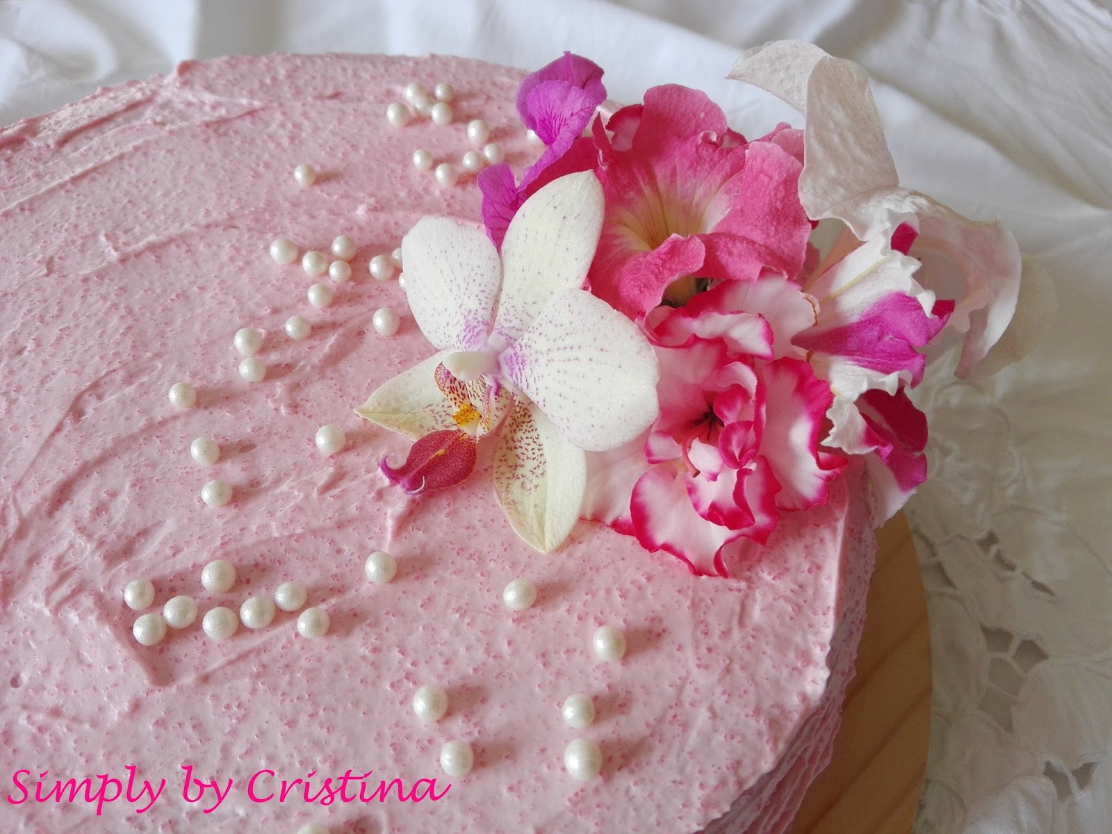 Ingredientes: Bolo 5 ovos 200g açúcar 250g farinha T55 1c. chá de Fermento para bolos Recheio: Deve ser preparado no dia anterior Ovos Moles Doce de Chila 250g 1 placa redonda de Massa Folhada (Levar ao forno a 200º/15Min.) Cobertura: 1 pacote 200ml de Natas (para bater) 1 saqueta de gelatina Mix Royal sabor Morango - Framboesa 1c. sopa de sumo de Limão Decoração: Flores naturais Pérolas Vahiné Preparação: Bolo: 1. No copo limpo, colocar o açúcar e os ovos. Inserir a borboleta, programar 7Min./37º/Vel. 3 2. Deitar a farinha e o fermento. Envolver 20Seg./ Vel. 3