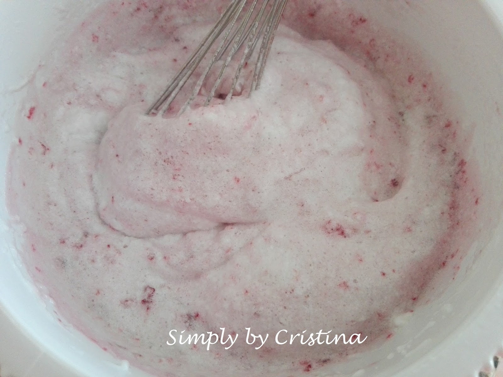 Ingredientes: 10 Claras (Ver aqui: Claras congeladas, o que fazer? ) 5 Gemas 200g Doce de Cereja ou outro a gosto 150g farinha T55 1c. chá de fermento ROYAL 125g Açúcar SIDUL Preparação: 1. No copo da Bimby colocar as gemas já descongeladas, e o açúcar. Colocar a Borboleta e programar 7Min./37º/Vel.3 2. Bater as claras em castelo. Adicionar o doce de Cereja e envolver delicadamente. Reservar.