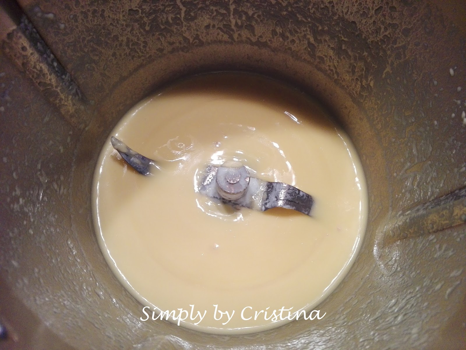 2. Colocar no copo o Buttermilk, o fermento, a manteiga, os ovos e o aroma OU as raspas de baunilha.