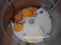 2. Colocar no copo o açúcar, os ovos e o leite de coco. 2Min./37º/Vel.3