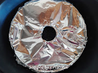 5. Com uma folha de alumínio, tapar a forma e abrir o centro para que o vapor possa sair de forma adequada durante a cozedura.