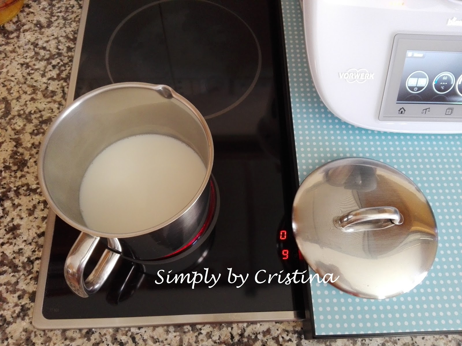 Colocar o copo medida e assim que atingir a temperatura Varoma retirar o copo medida e deixar destapado.