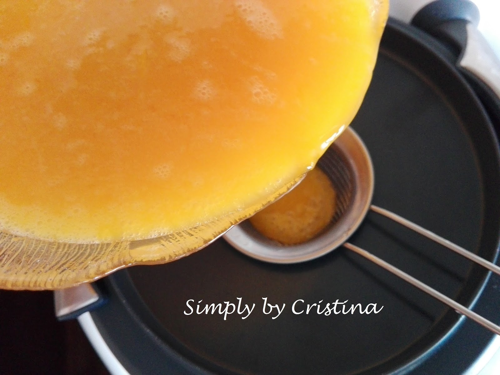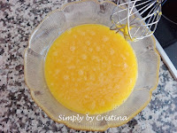 5. Depois de bem misturado, adicionar os ovos à calda de açúcar reservada.