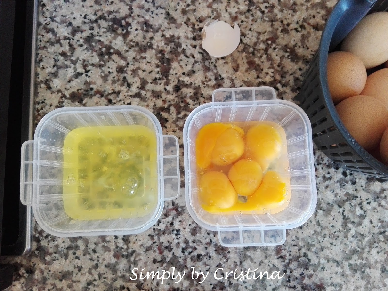 4. Separar as gemas das claras dos 5 ovos.