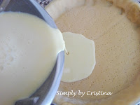 7. Terminado o tempo deitar o preparado na base da tarte.